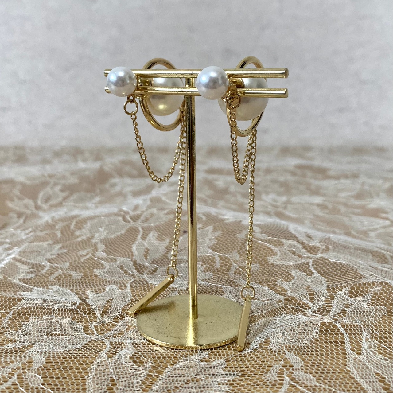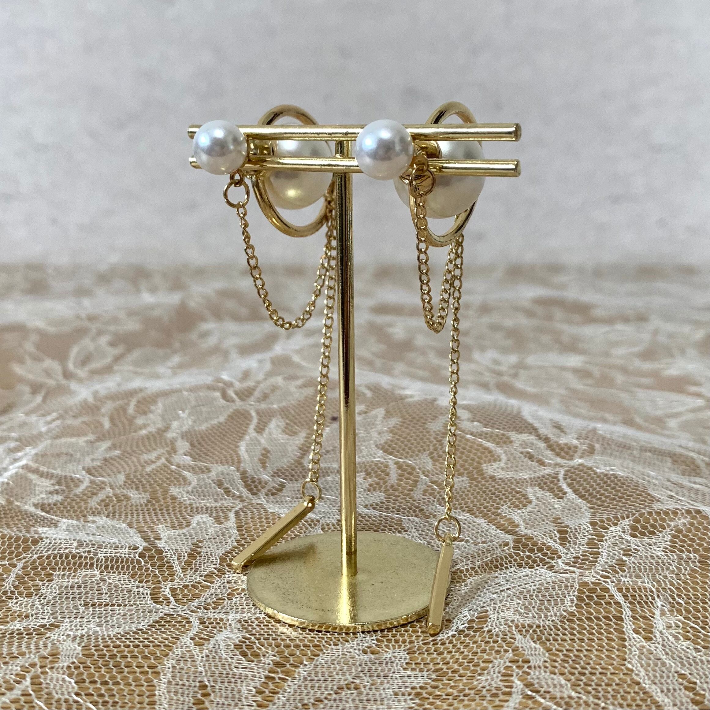 パール&チェーンピアス