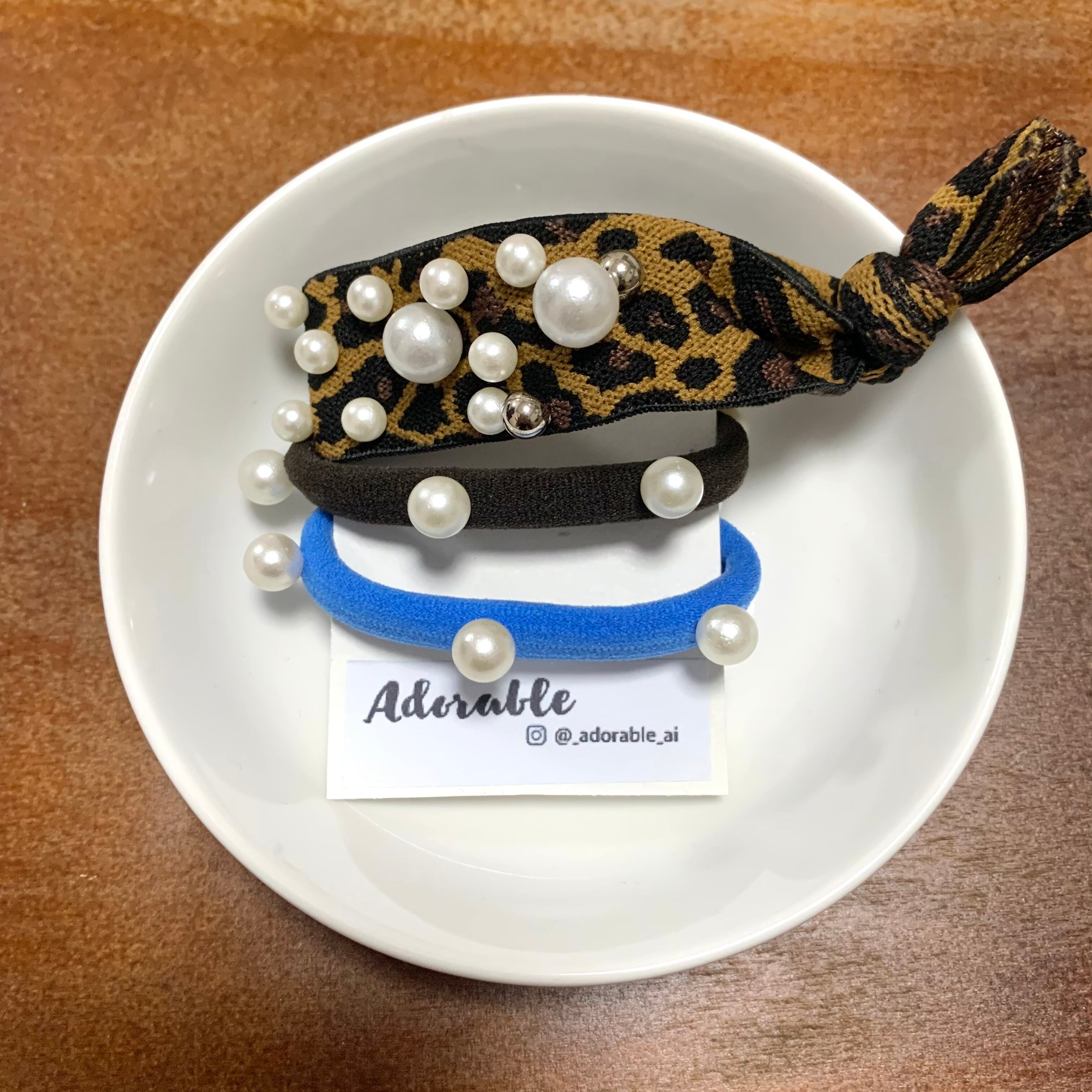 豹柄ゴム1つととランダムでカラーゴム2つの計3つセットとなっております♪