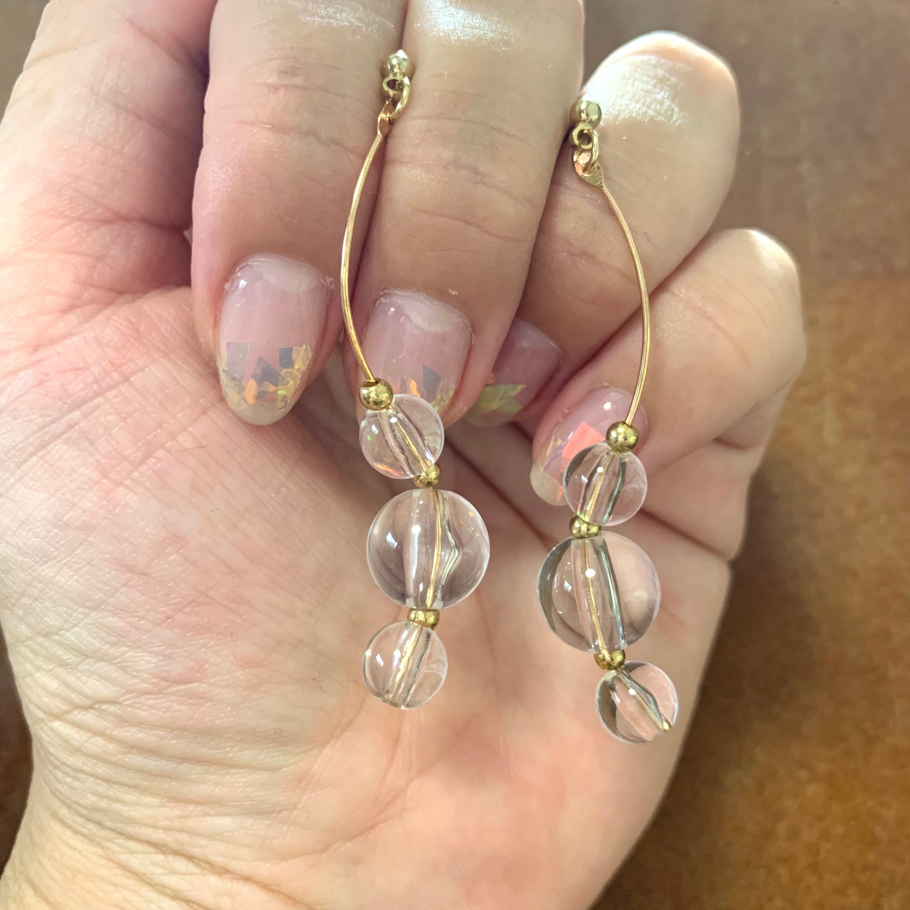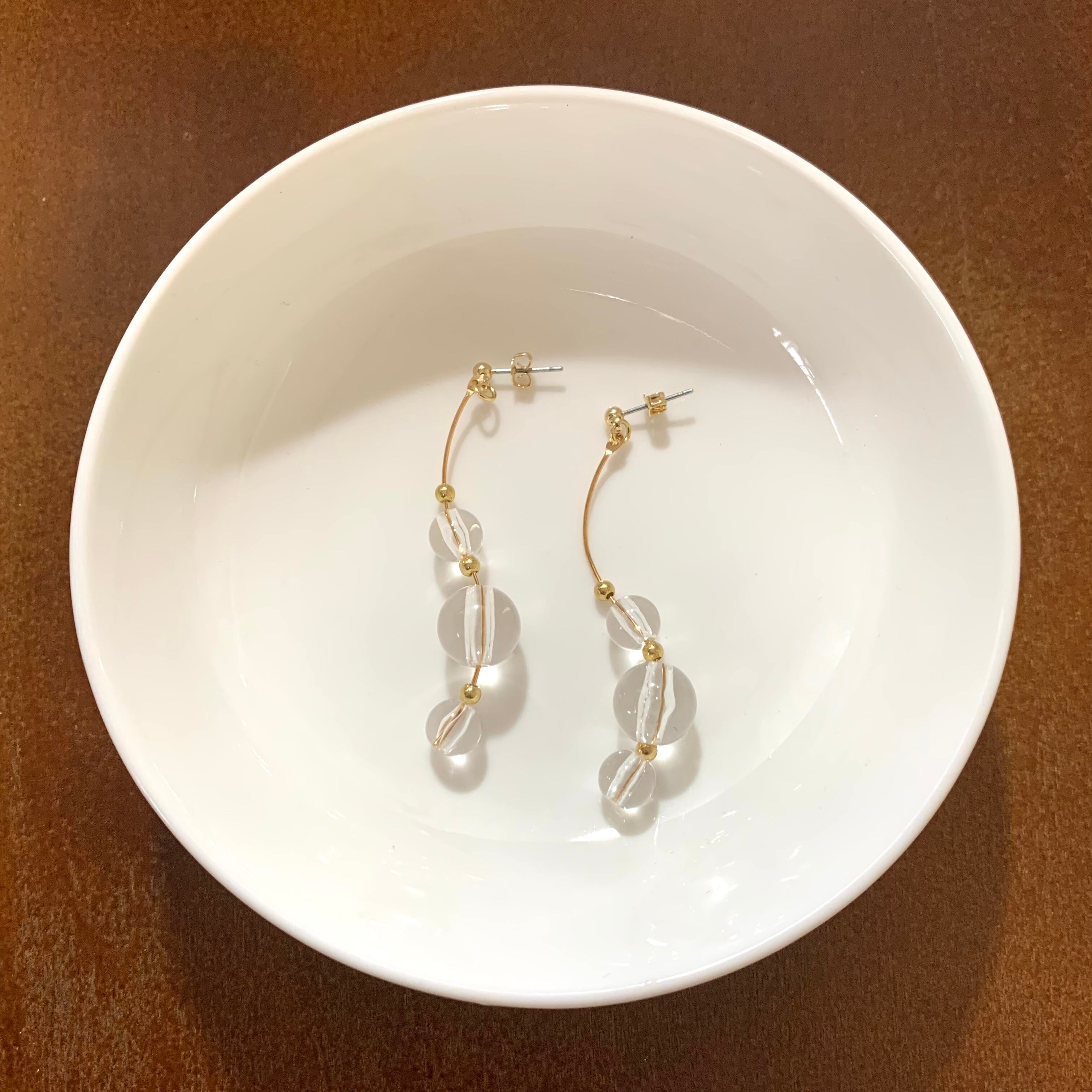 夏らしい爽やかなデザイン♪ ビーズなので重さもなくガラスのように割れる心配もありません。 軽い付け心地です。 アレルギー対応可能 イヤリング変更可能